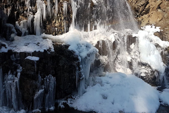 Notably a man-made waterfall, Drung Waterfall freezes completely during the winter season, creating a beautiful icy landscape that fascinates the visitors. The Frozen Drung Waterfall has started attracting visitors from all over the valley along with those who arrive in Kashmir to witness its beauty and enjoy.